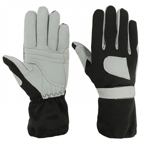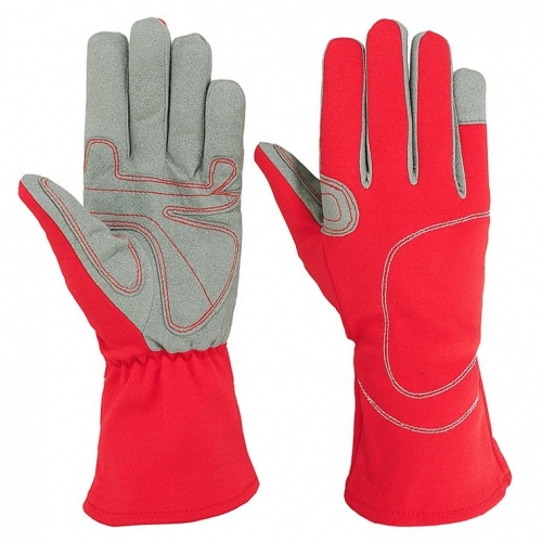 SFI Certified 3.3/5 rating Made with DuPont Nomex Fiber Double Layers of DuPont Nomex Knitted Fabric Outer Layer Royal Blue Color DuPont Nomex Knitted Fabric Inner Layer Ecru White Color DuPont Nomex Knitted Fabric Cowhide Ptat Leather Palm and fingers for safety and grip on the front Stitched with 100% Meta Aramid Sewing Thread